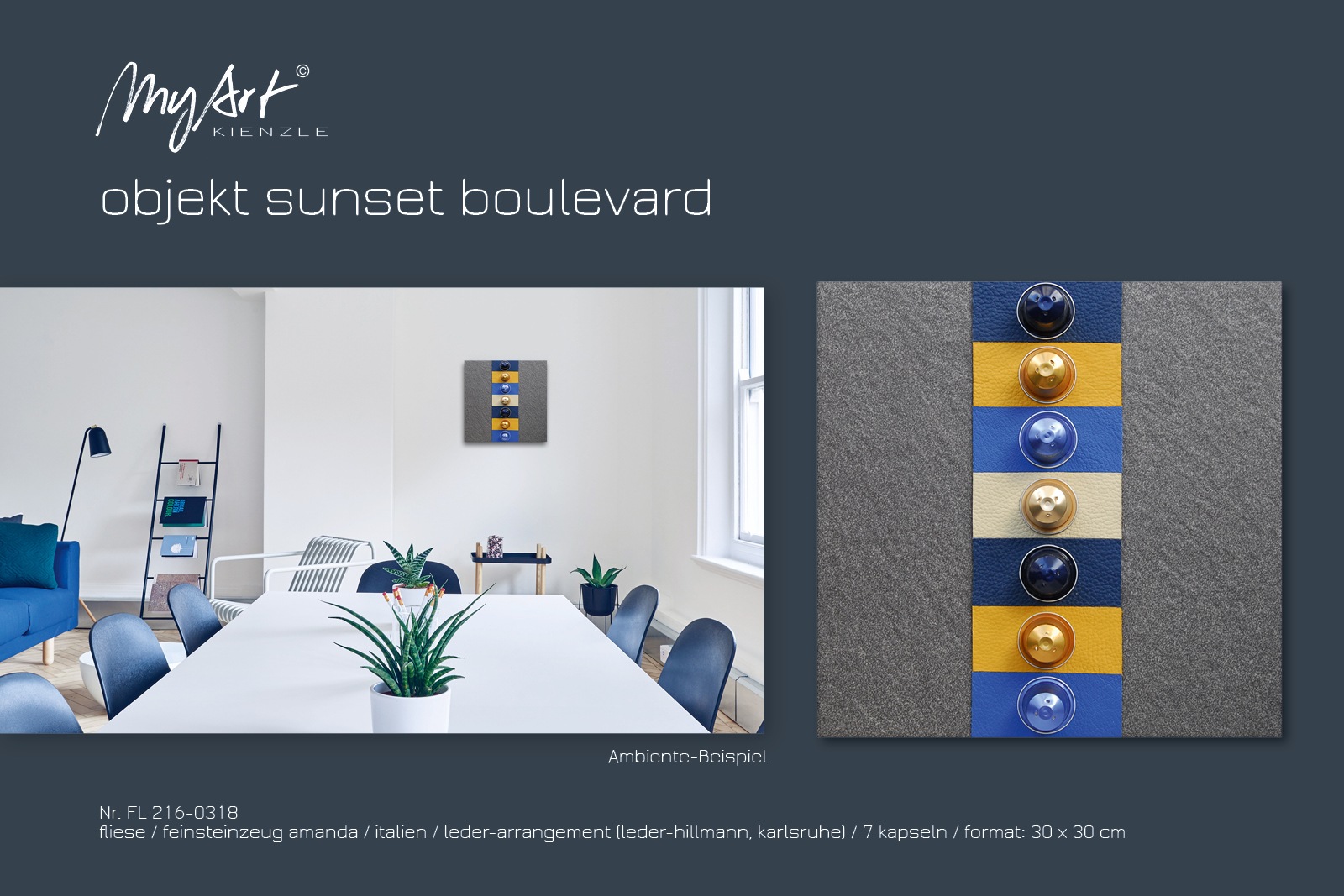 The harmonious series of objects is based on square bases made of high-quality materials such as porcelain stoneware, stainless steel, wood, painted canvas… In combination with recycled aluminium capsules and high-quality leather, this results in an impressive spectrum of modern object design.