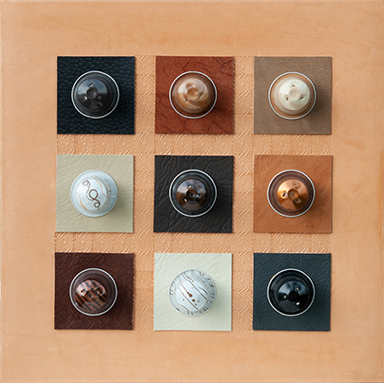 Ein Kunstwerk wie eine Hommage an den Wilden Westen: BONANZA ist auf echtem Sattelleder gefertigt, das mit einem feinen Muster von Hand punziert wurde – ein Sinnbild für Handwerk, Reitkunst und rustikale Eleganz. Darauf ruht ein Mix aus Lederquadraten in warmen Sand-, Braun- und Cognactönen. In der Mitte jeder Fläche: eine passende Nespresso-Kapsel, farblich abgestimmt von Milchkaffee bis Mokka, von Kupfer bis Schokolade.